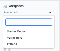 On the right side of the task modal there will be a dropdown to select assignees.