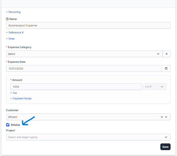 By default the expense amount will be in your base currency. If you choose this expense to be billable the currency will be changed according to the customer currency.