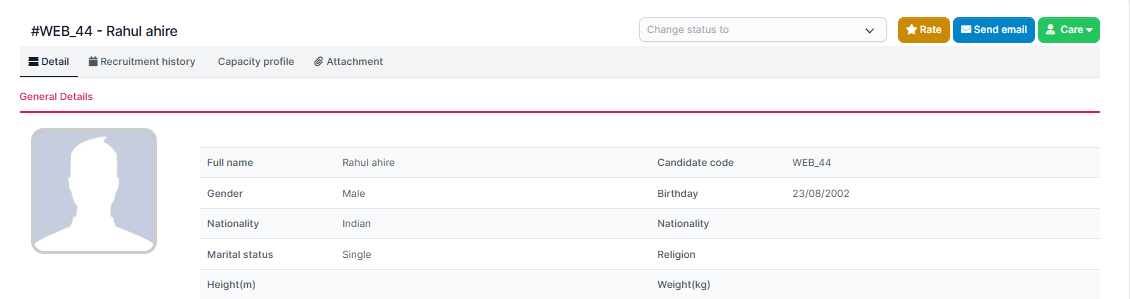 - Step 2. Go to candidate detail -> Click Rate button.