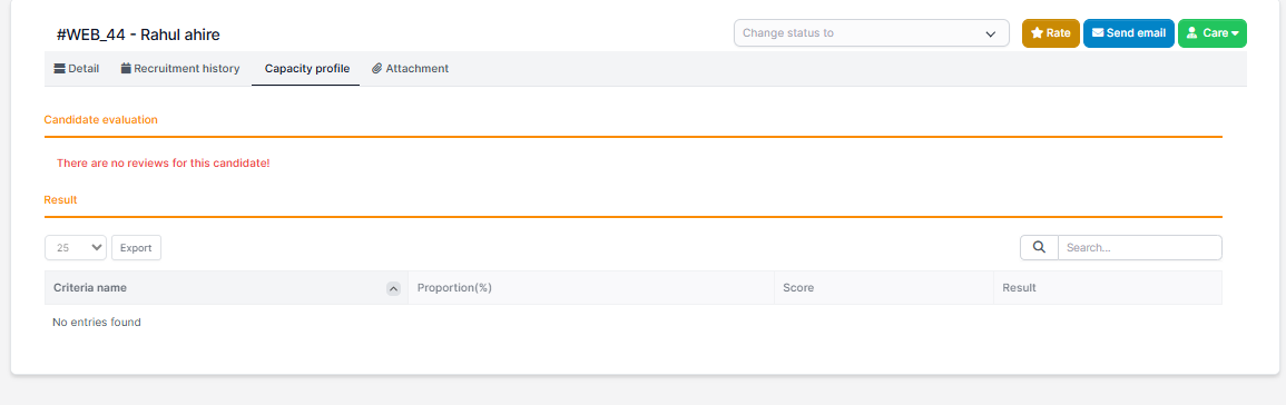 Note: When the candidate is not in any recruitment campaign, you cannot be evaluated.