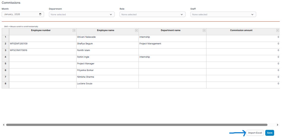 When synchronizing with the Commission module, the system will automatically update the equivalent values contained in the Commission module such as the total amount of employee commissions achieved in that month