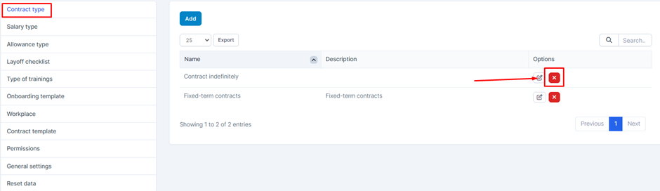 The data set in Contract Type will be used for the Contract Menu in the HR Profile module