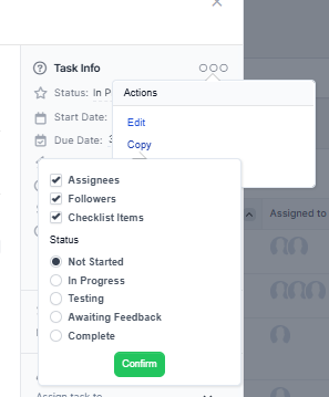 Additionaly by the regular task data you can copy assignes, followers, attachments and checklist items.