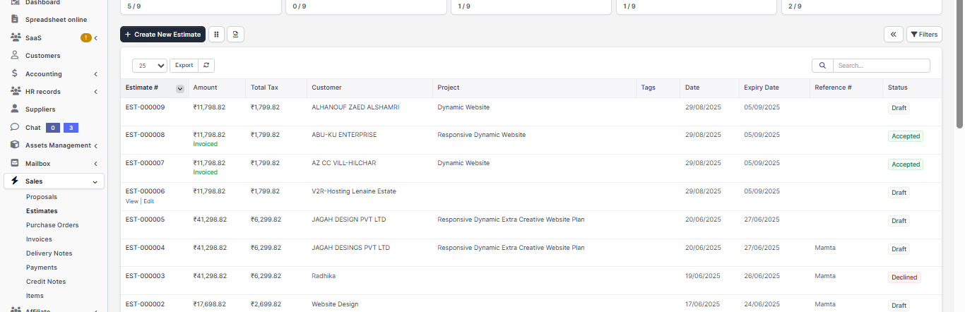 This number its fetched from Setup->Settings->Finance->Estimates – Next Number the number its auto increment but you can change the next number in Setup->Settings->Finance->Estimates.