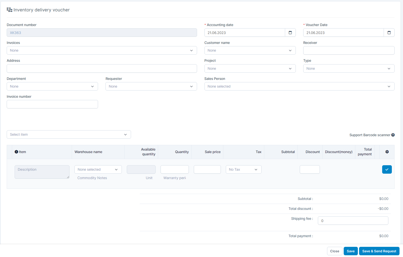 - Step 3. In the Inventory delivery voucher page, fill in the required details: