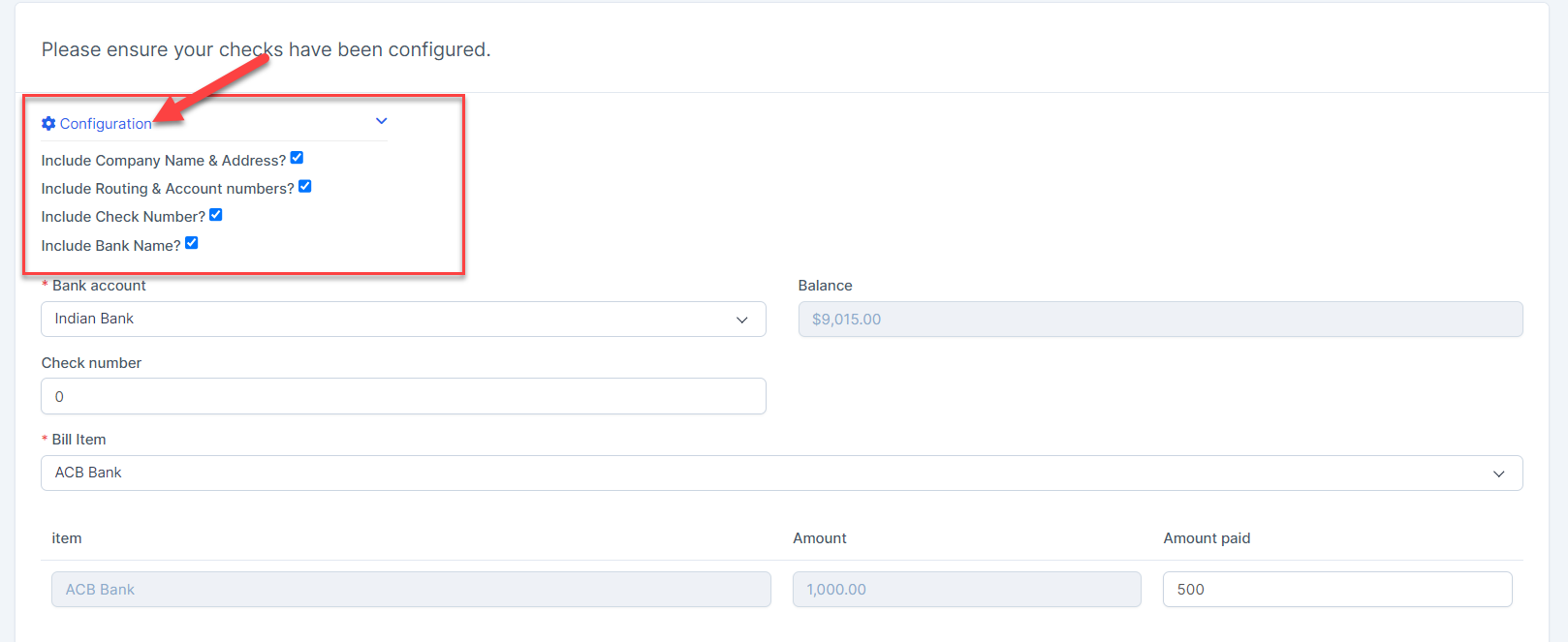 - Step 1. Go to Checks menu under the Accounting module and configure check, see details at https://wpscrm.com/knowledge-base/article/create-new-check-print