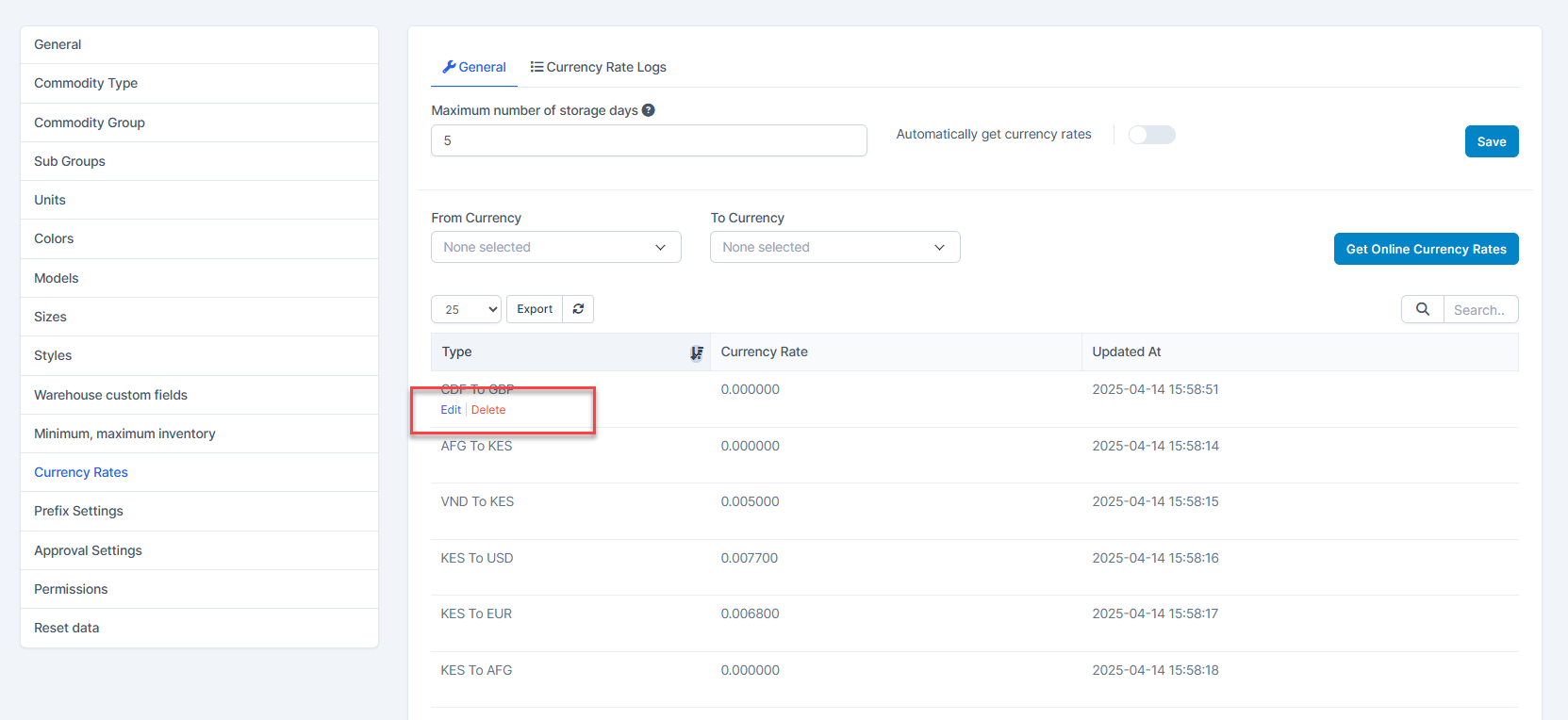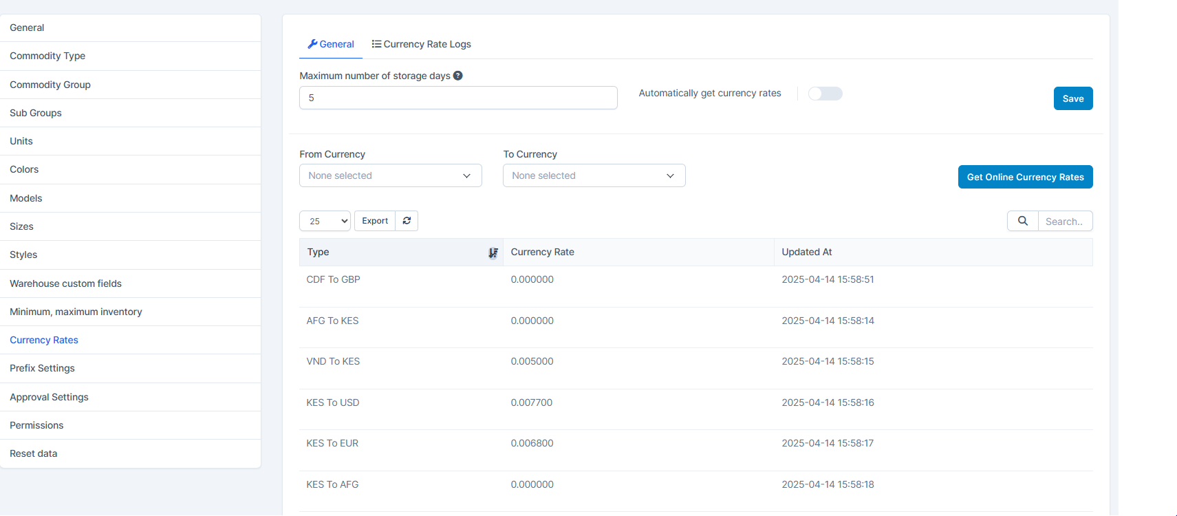 - When disabled: users must manually fetch or update exchange rates via the Get Online Currency Rates button or use manual input.