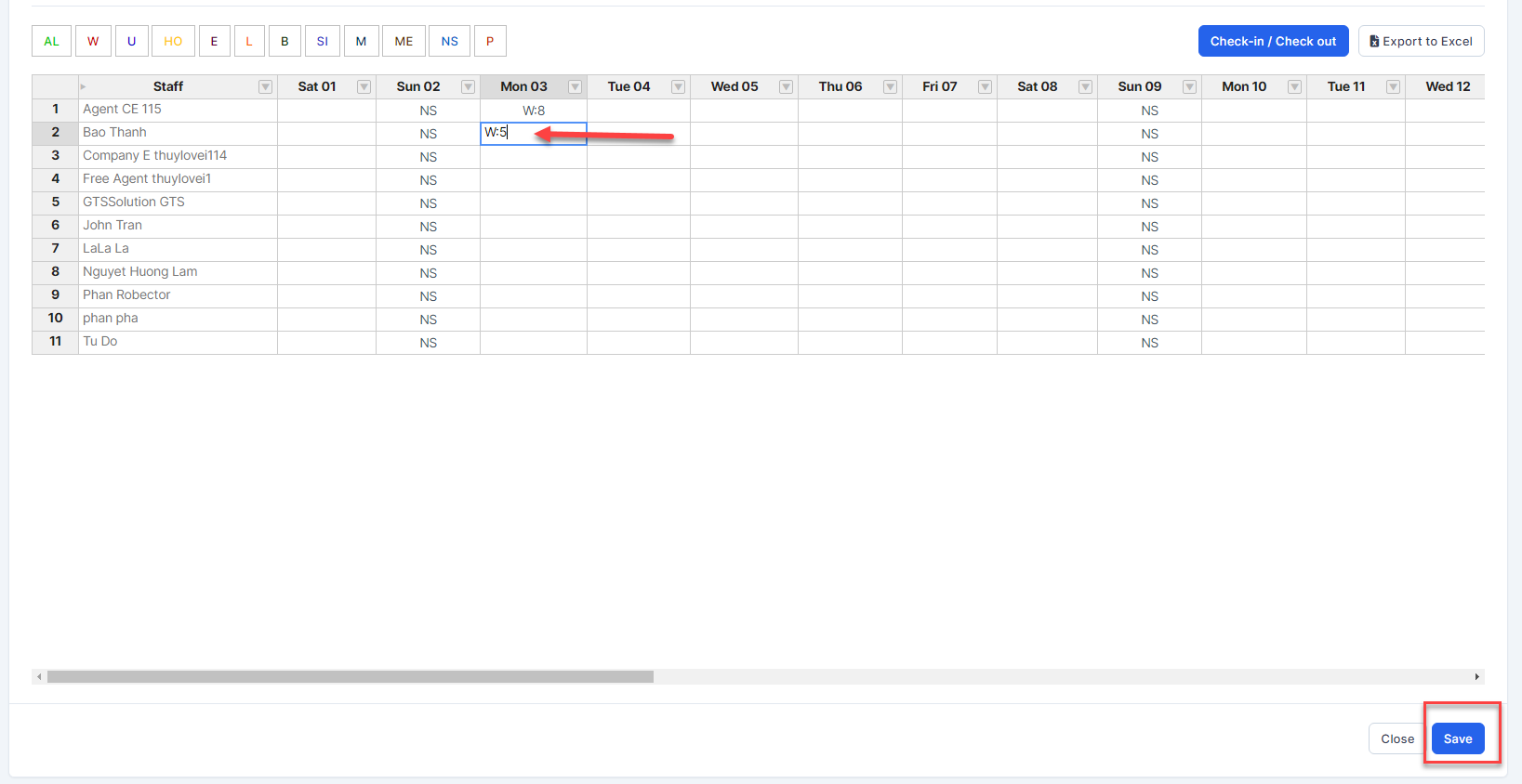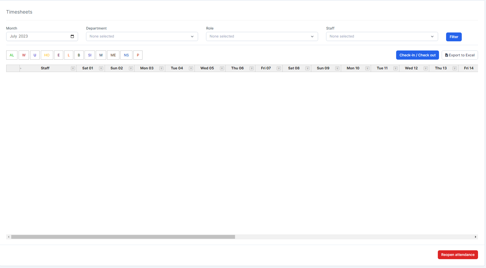 Close attendance button: close the timesheet of each month. Even though the timesheet has been closed, the system still records the employee's working time when they timekeeping.