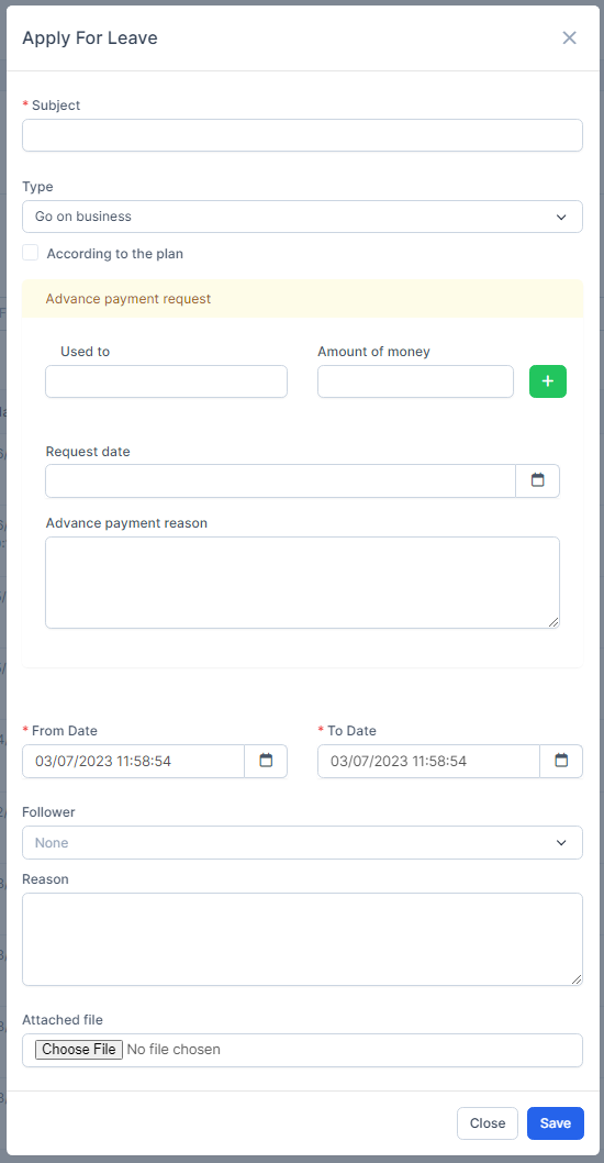 - Step 2. In the Apply For Leave popup, fill in the following details: