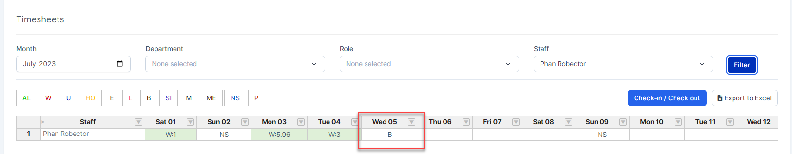 - Step 4. Approve this request. On the timesheet, show the symbol B for business trip