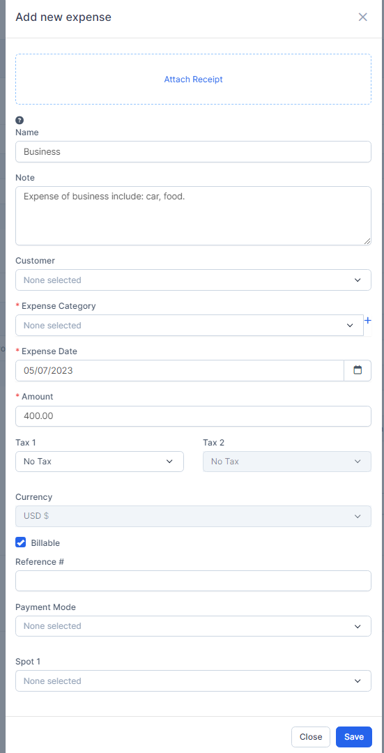 - Step 6. In the Add new expense popup, select the Expense Category and click on the Save button