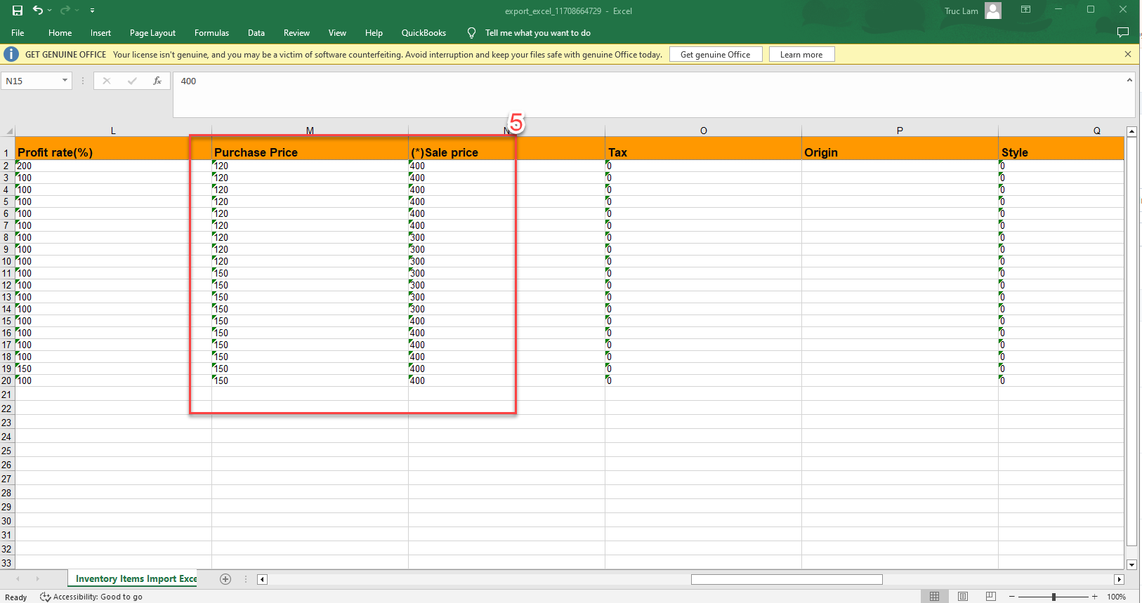 Step 2. update purchase price and sale price in the excel file you just downloaded