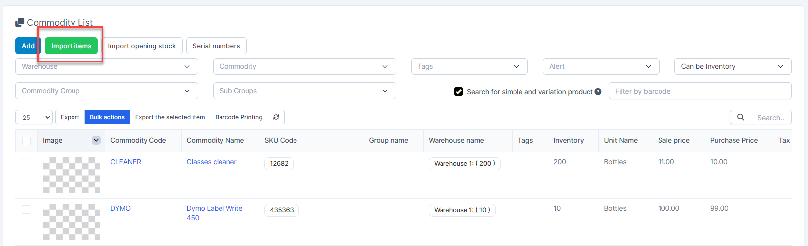 - Step 1. Go to the Inventory module in the left sidebar and select Items menu
