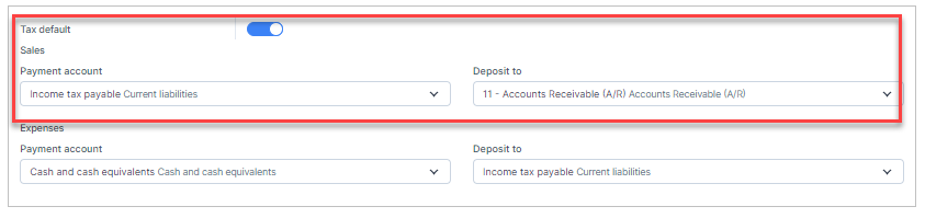 - Step 2. Enable the Tax default -Sales mapping setup so that the total tax amount of the inventory delivery voucher will be mapped to this configuration. if this configuration is not enabled, the tax of the inventory delivery voucher is not mapped to any accounts.