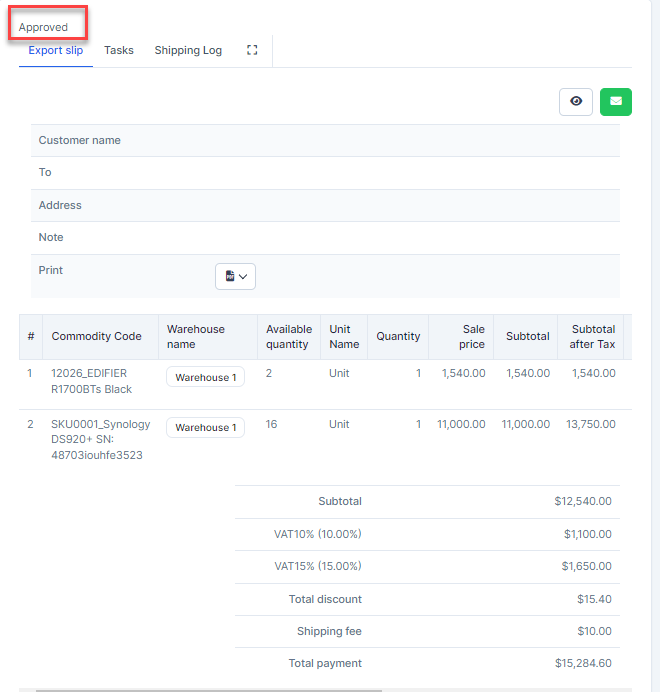 - Step 3. Create the inventory delivery voucher and approve it.