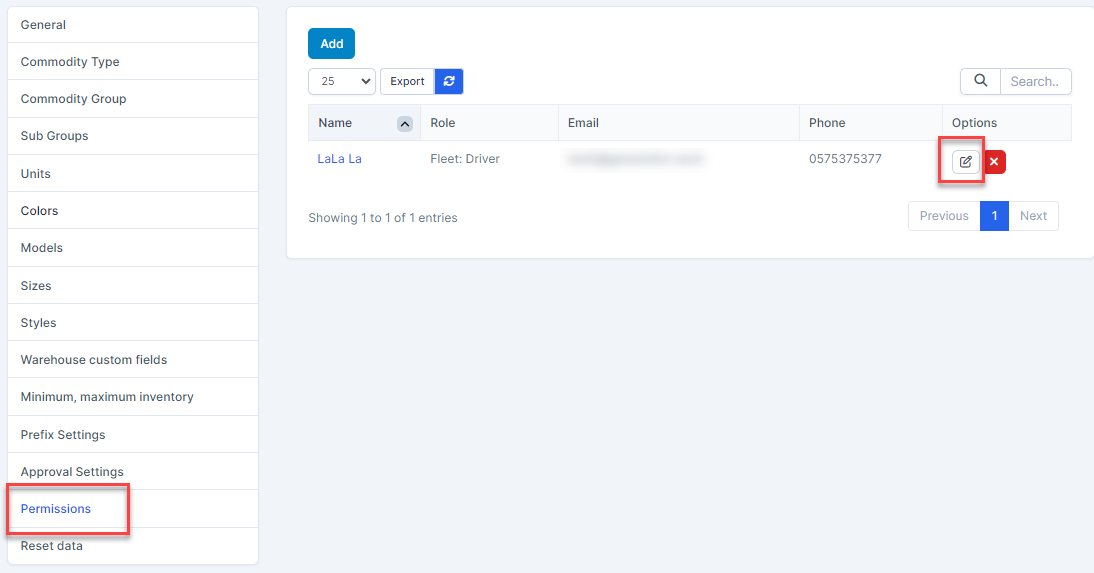 - Step 2. Select Permissions menu -> Select permission need to be edited and click Edit