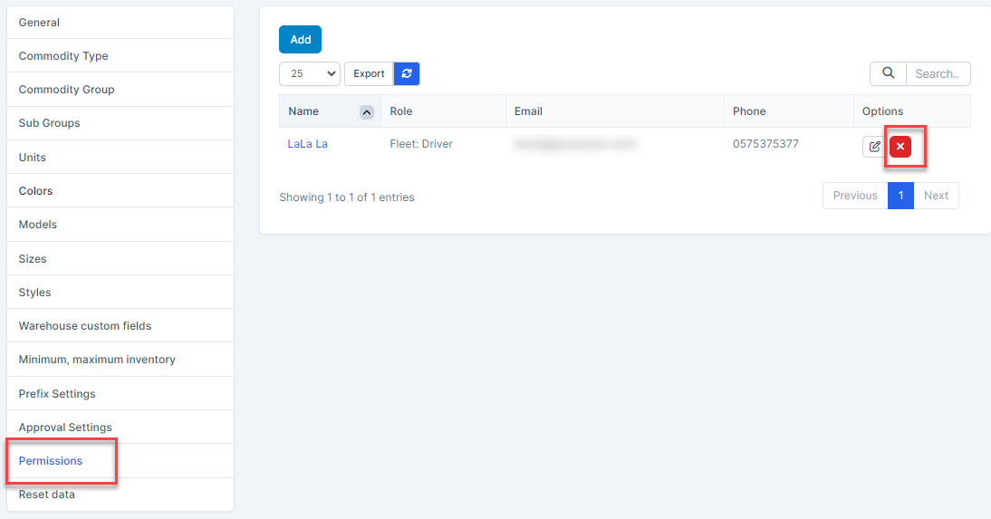 Delete permission - Step 1. Go to Settings menu under Inventory module from the left sidebar