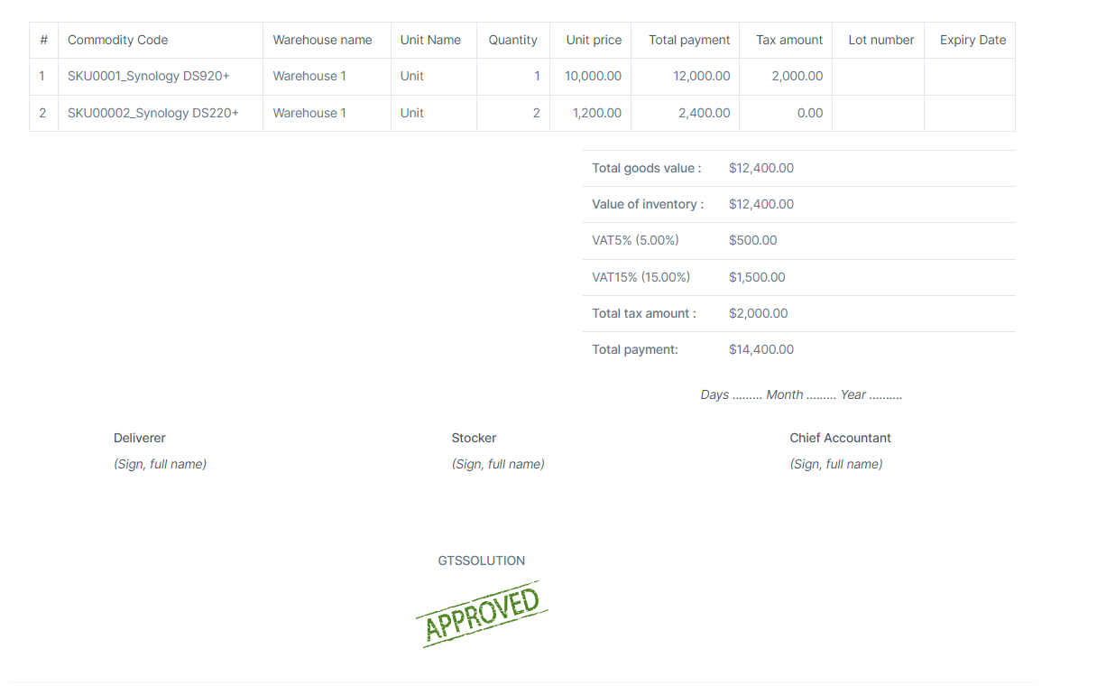 Step 4. Go to the Transactions menu under the Accounting module -> Inventory -> Inventory receiving voucher, this inventory receiving voucher is mapped automatically.