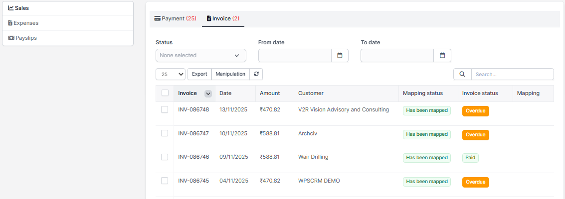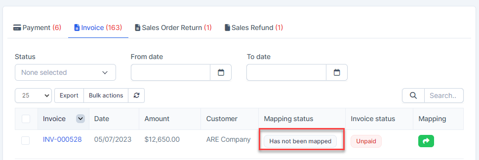 After the invoice is created successfully, the invoice is automatically mapped, you can check the invoice is mapped or not at Transactions menu -> Sales -> Invoice