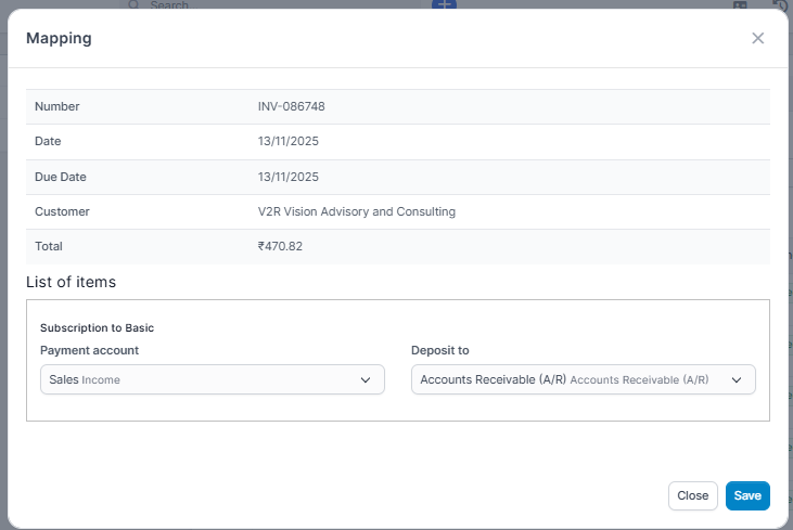 NOTE: If the Invoice: default for all item is turned off, the invoice is not automatically mapped.