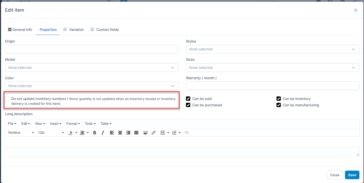 - If the number of existing items is < X => always display the item in drop list