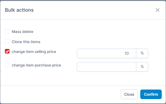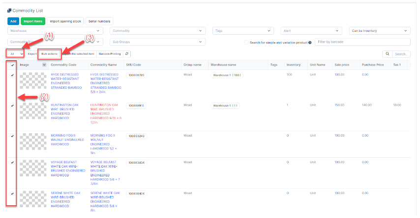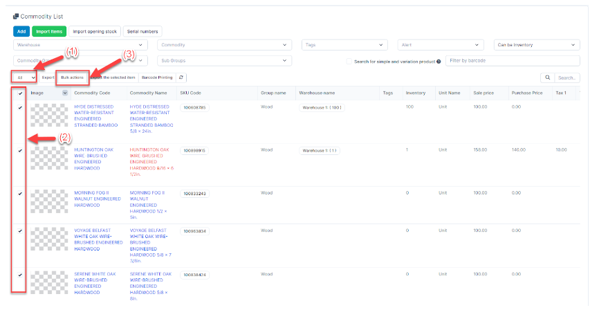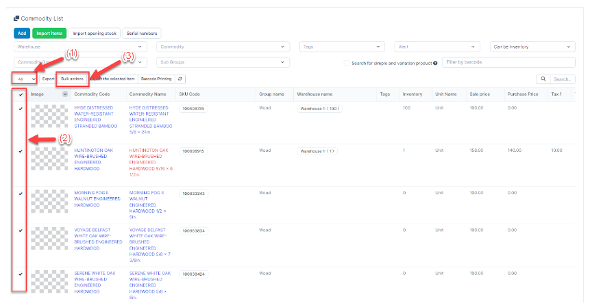 - Step 1. Select the items to be changed selling price and press Bulk action.