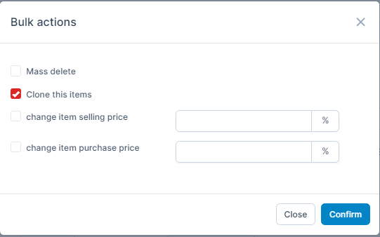 - Step 1. Select the items to be cloned and press Bulk action.
