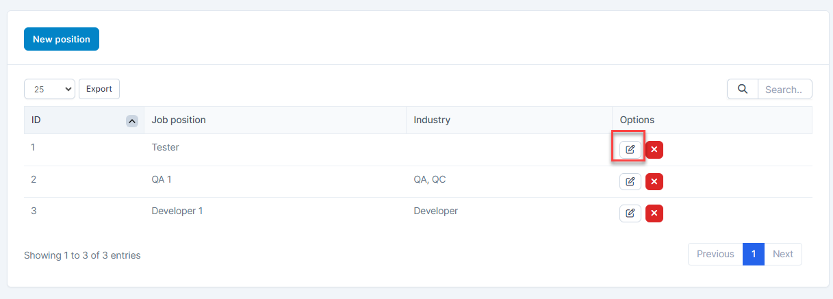 - Step 2. Select the Job position menu -> Select the position need to be edited and click Edit button