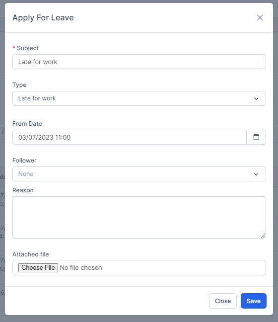 - Step 2. In the Apply For Leave popup, fill in the following details: