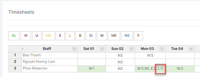- Step 4. Approve this request ( if any) The symbol "L" is displayed on the timesheet.