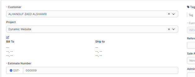 - Go to Menu -> Sales -> Estimates and click Create New Estimate