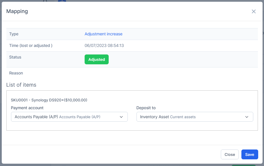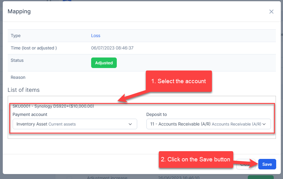 - Step 1. Go to Settings menu under the Accounting module in the left sidebar -> Select the Mapping setup menu -> Select the Inventory tab -> Enable the loss & adjustment mapping setup and select the payment account and deposit to -> Click on the Save button