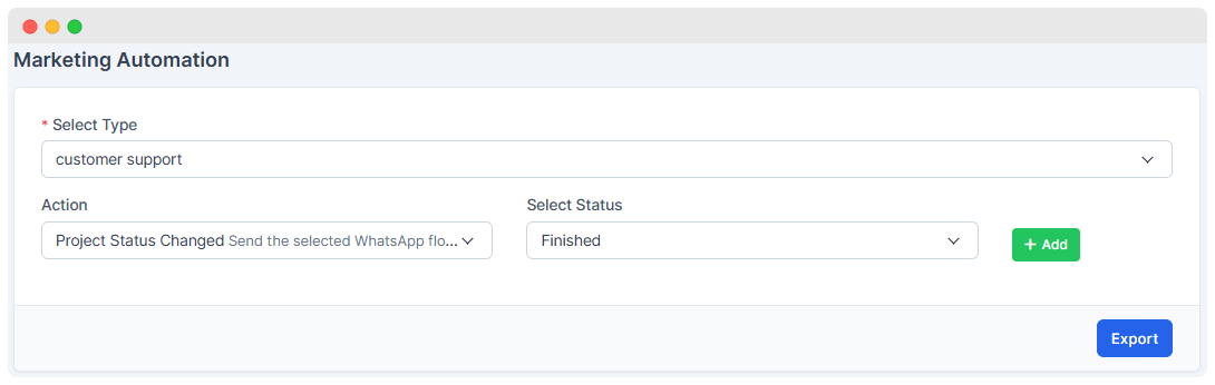 Communication is triggered: The system can automatically send WhatsApp messages using ready-made templates, allowing quick feedback confirmation, follow-ups, or promotions.