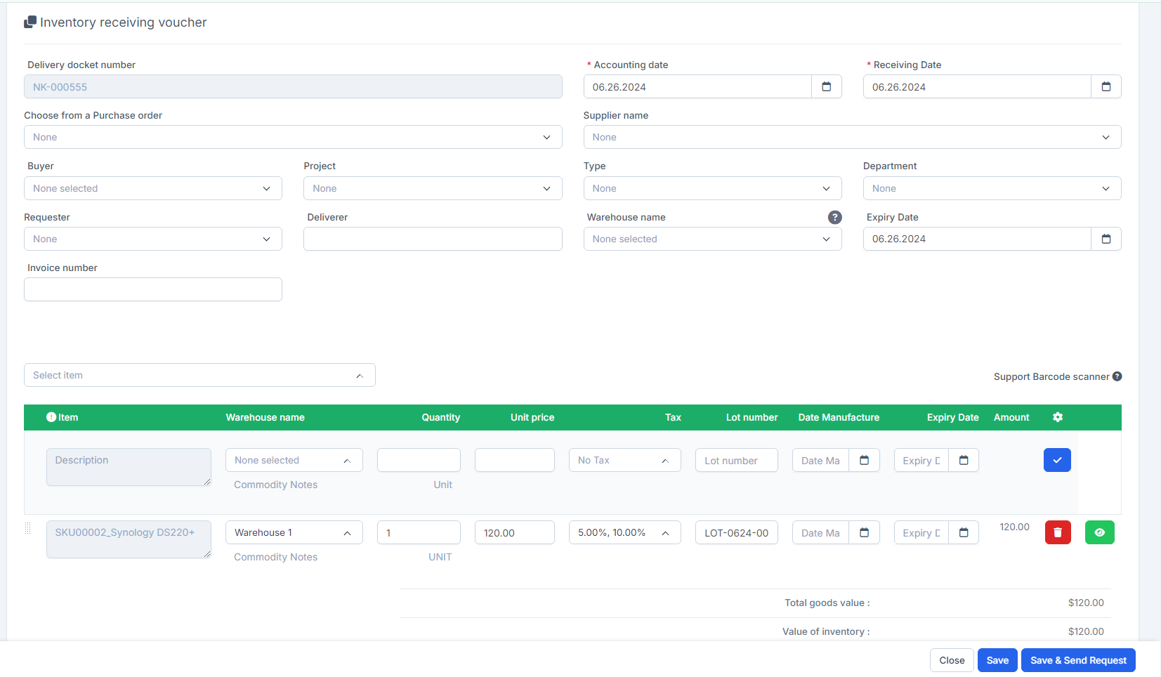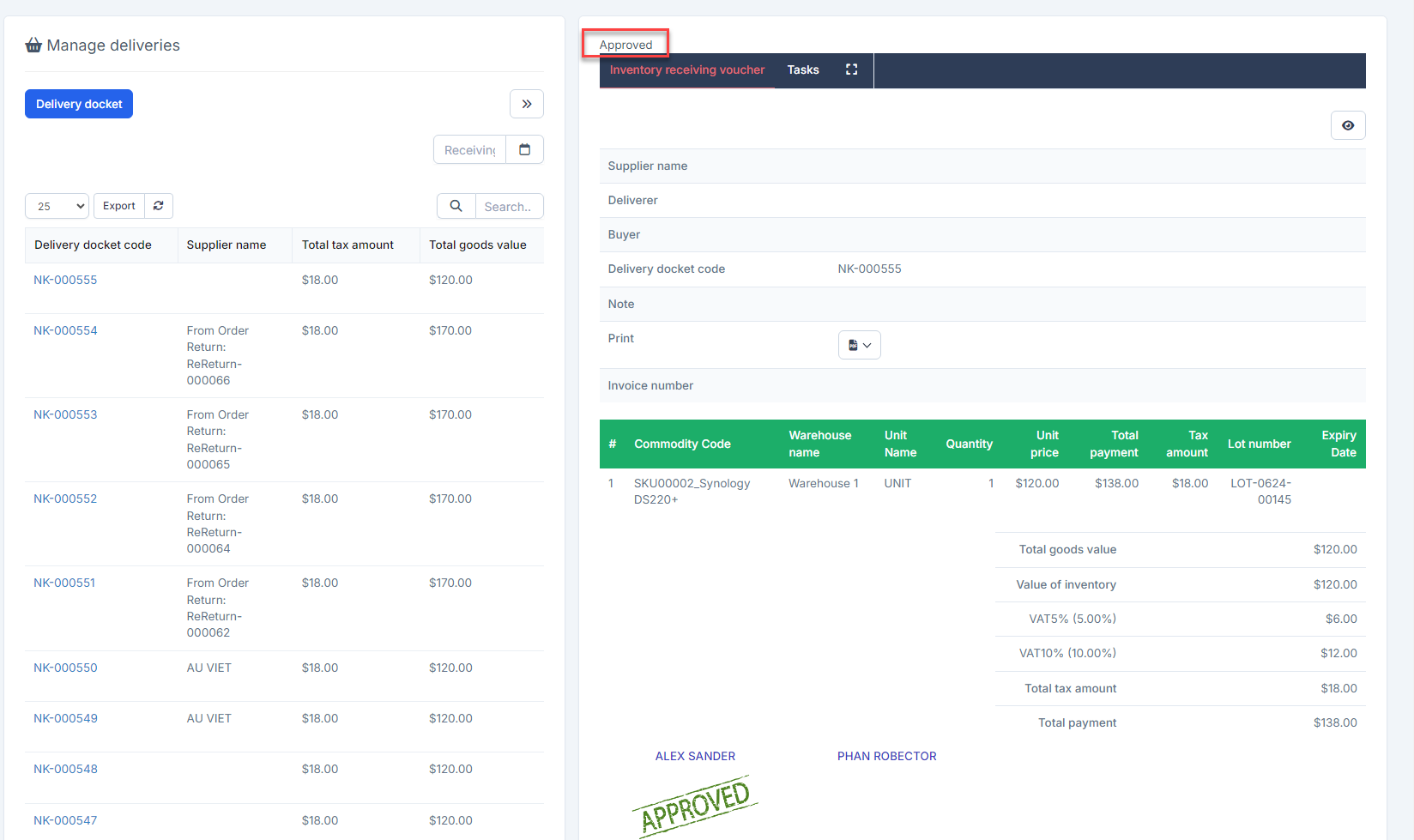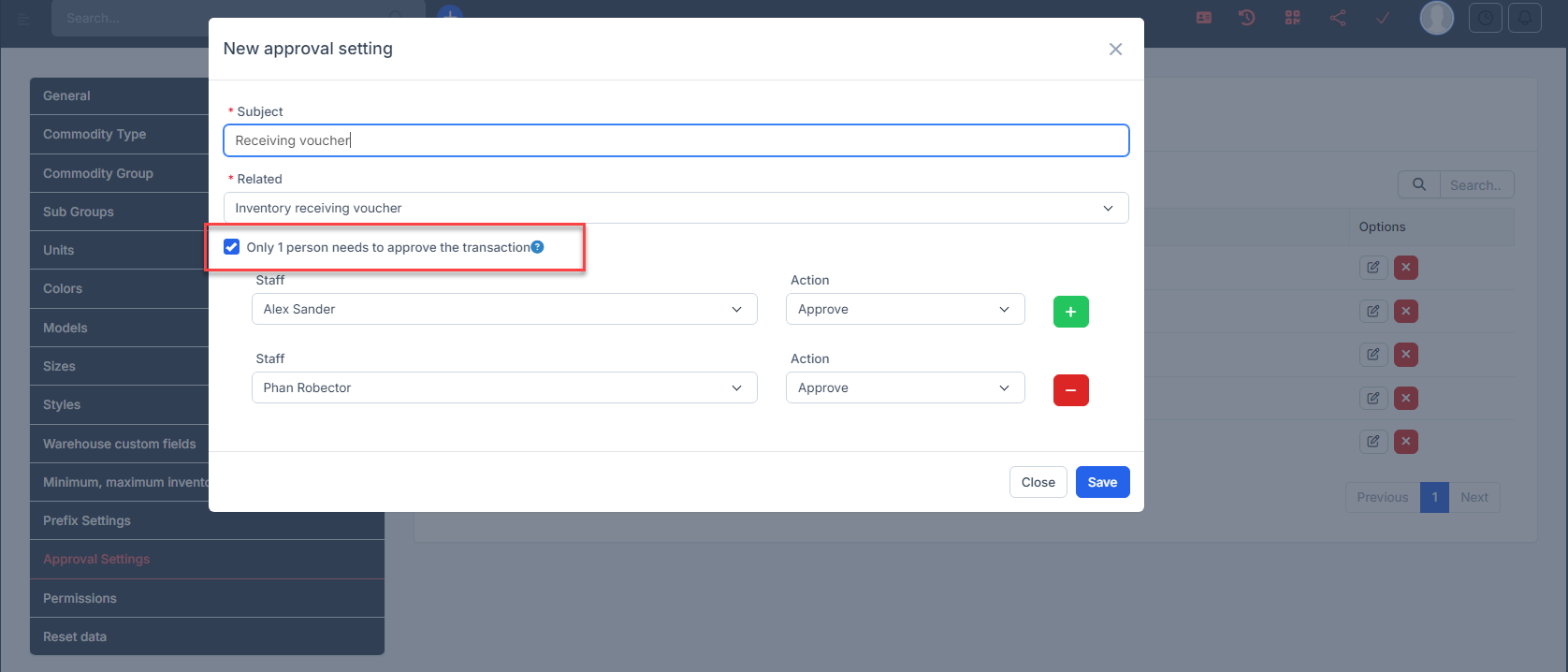 1. Go to Inventory module -> select Settings menu -> select Approval Settings