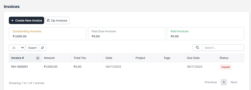 Step 3. The system automatically creates a Sale Invoice corresponding to this balance.