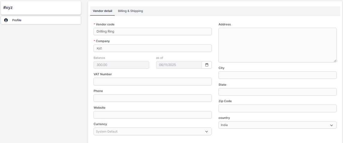 - Step 1. Go to vendor detail -> Enter Balance and as of -> click Save