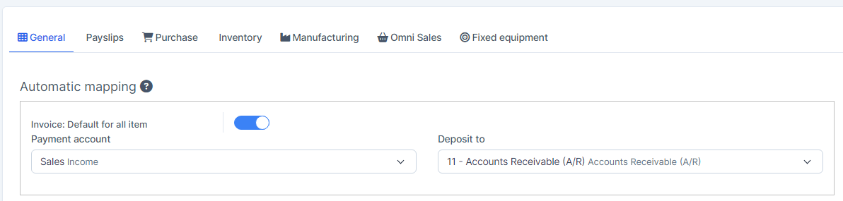 The customer's balance is mapped to the account according to the Sales invoice mapping