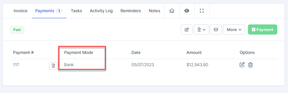 Step 2. Create the payment from a invoice with payment method is Bank