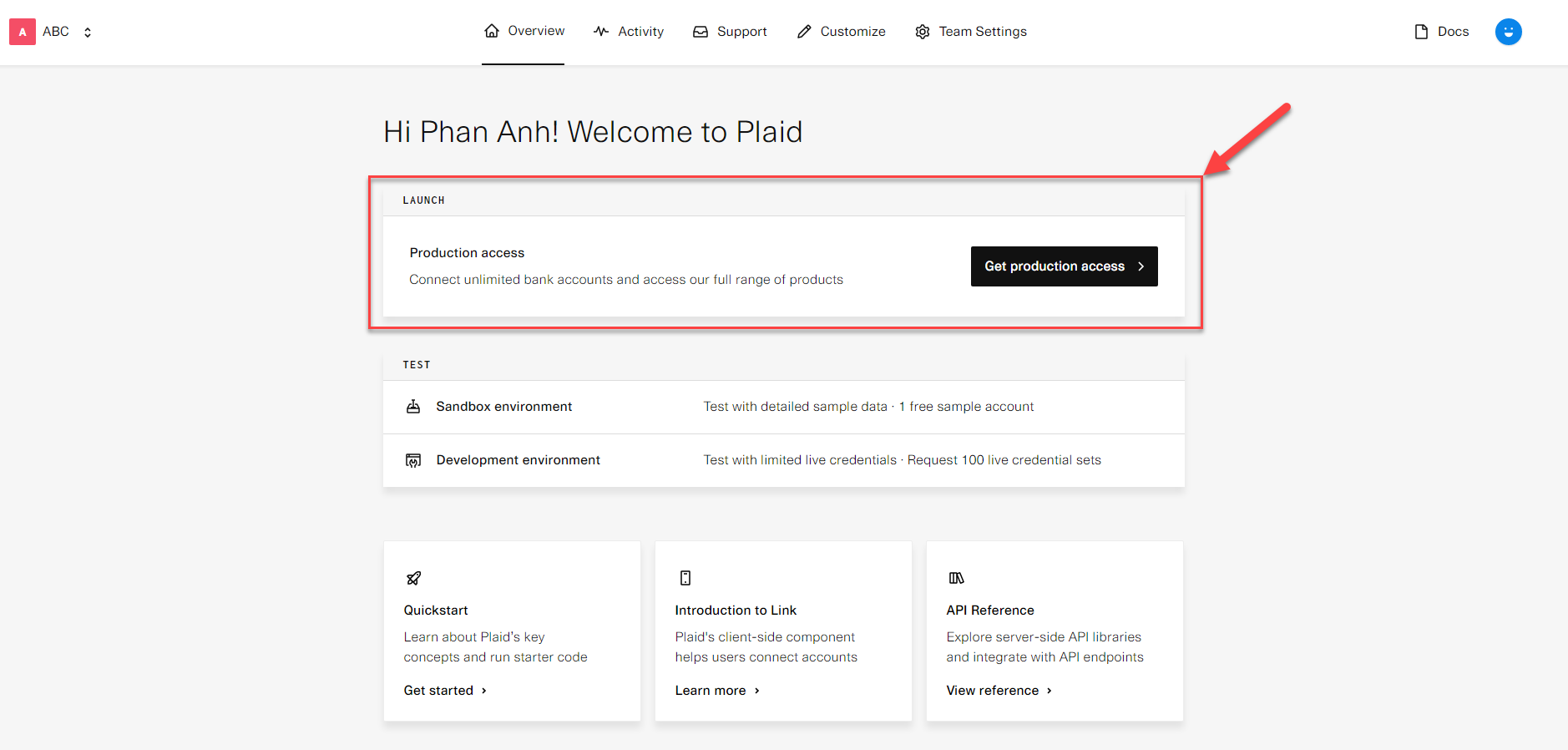 - To access real bank data, request Production Access from Plaid to receive your production key.