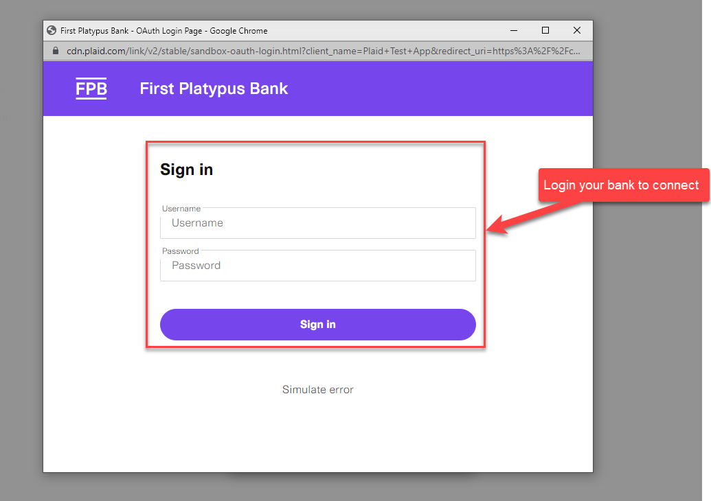 Enter your Plaid credentials: