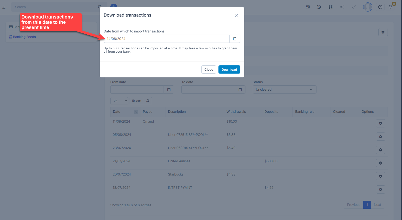 - Download transactions: Fetches real bank data into your CRM.
