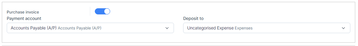 - Step 1. Go to Settings menu under the Accounting module in the left sidebar -> Select the Mapping setup menu -> Select the Purchase tab -> Enable the purchase invoice mapping setup and select the payment account and deposit to -> Click on the Save button
