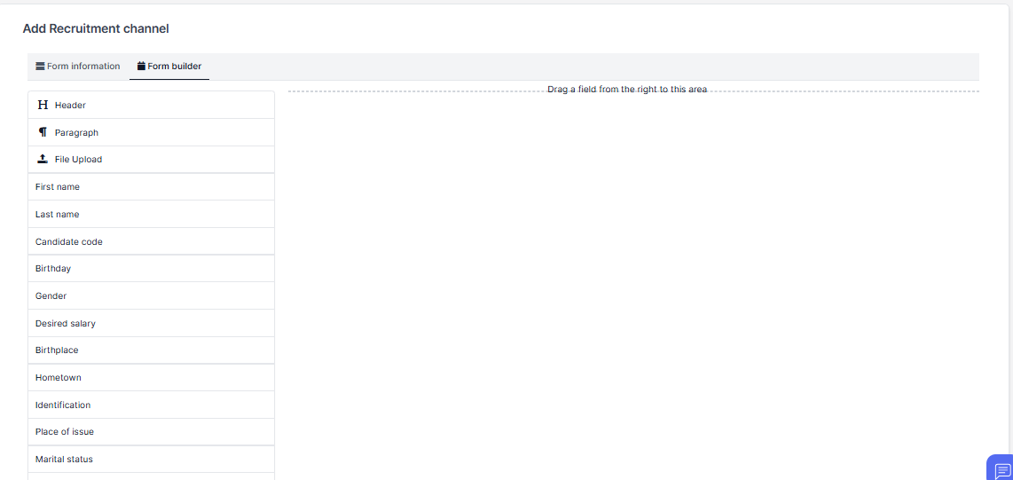 - Step 1. Go to Recruitment channels menu under Recruitment module from the left sidebar