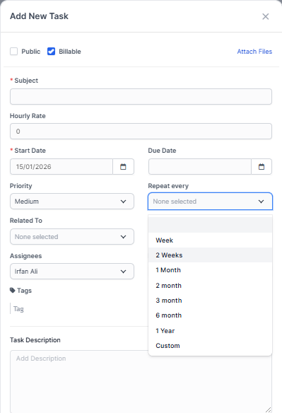 - On the recurring field select repeat interval, you can also select custom interval to fit for your needs.