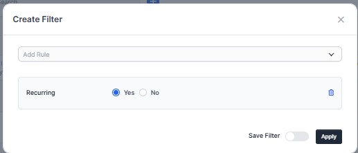 First, find your recurring task by applying a filter to the Tasks table as shown below.