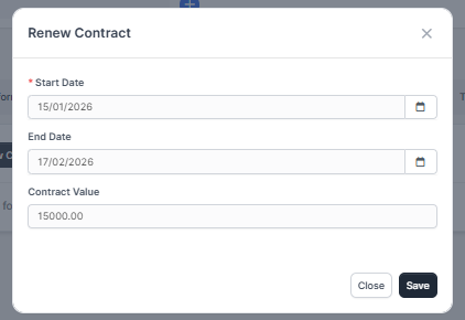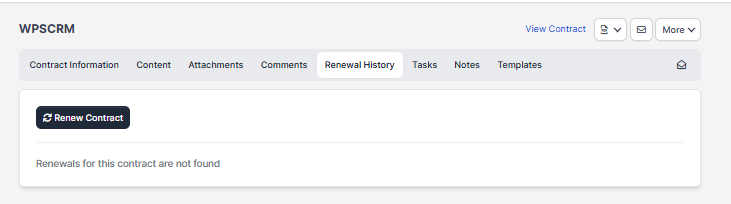 You can renew contact by clicking on edit contract and on the right upper side click Contract Renewal History and click Renew Contract.