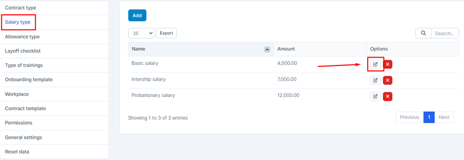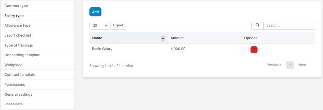 The data set in Salary Type will be used for the Contract Menu in the HR Profile module.