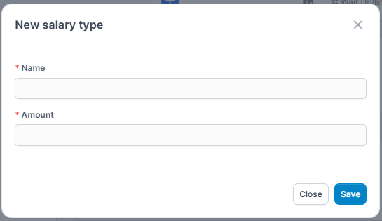 - Step 2: The system will open a screen called New Salary type -> We proceed to enter data -> Then select SAVE to save the operation or select Close to close the screen and cancel the operation just done .