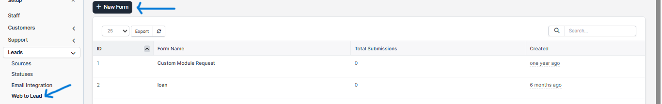Click on the button on the top left side New Form