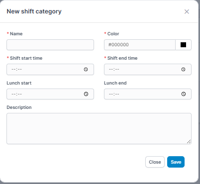 Description: Additional notes or context about this shift category. For example: "24-hour on-call support shift".